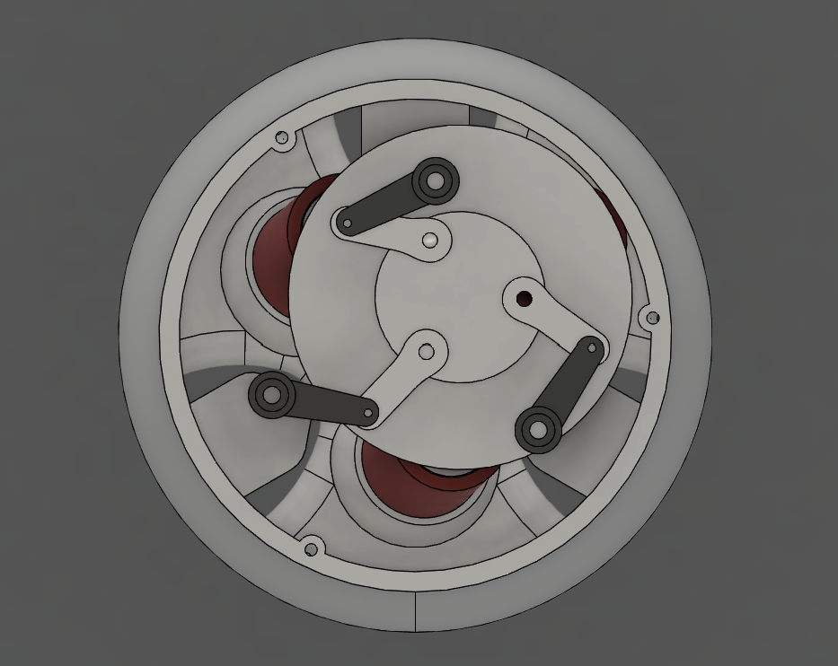 This project builds upon the Red Hill thrust vectoring design incorporating a much more robust manner of displacing the thrust plate. Three servo's work in conjunction to move the thrust plate into position.