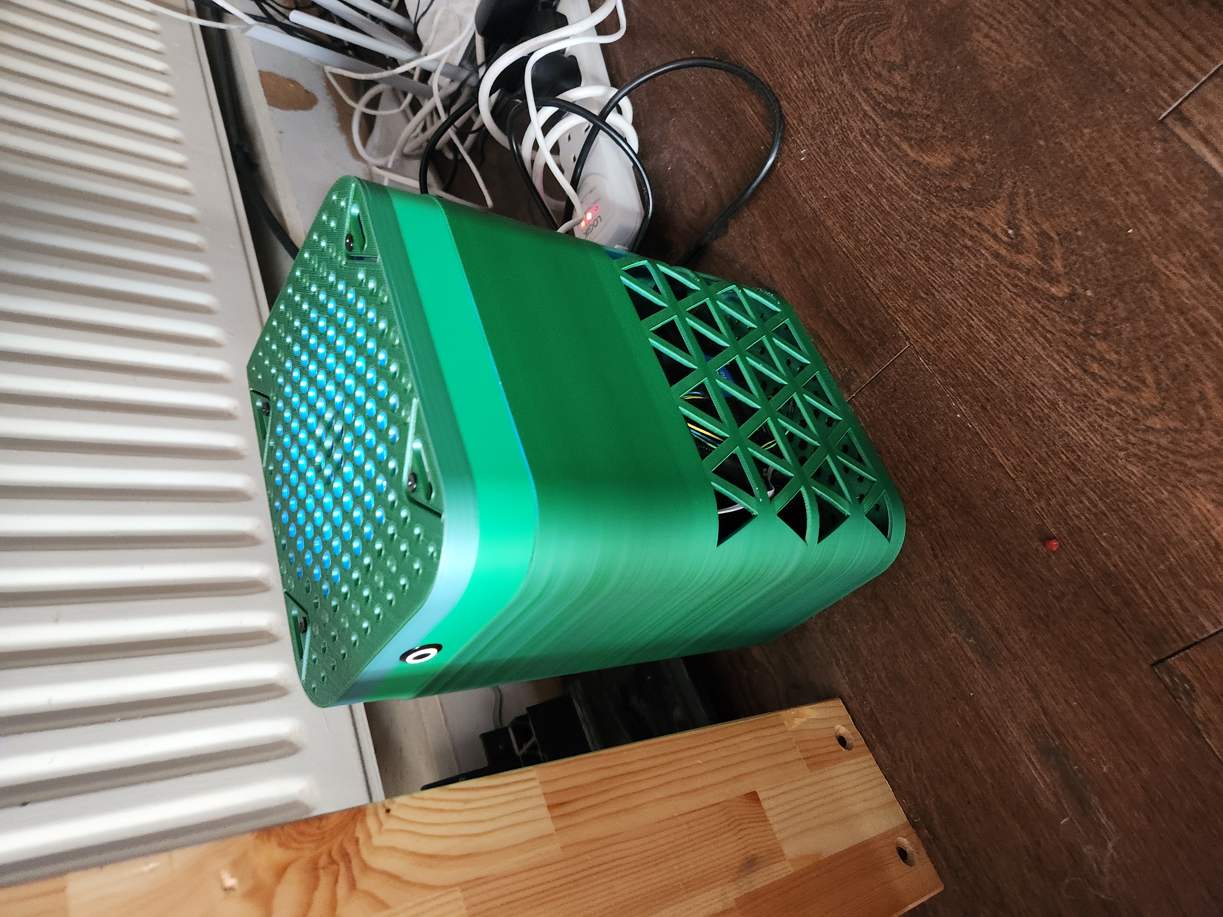 To host this portfolio website, store my files, host product licenses for eirspace, run a VPN and various game servers I needed a simple server. I ended up reusing computer parts I had laying around and incredibly cheap decommissioned server drives to get it up and running as cheaply as possible. Using a normal tower PC case was also out of the question so I designed a case to be 3D printed.